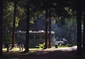 Our small family-owned campground has forested sites surrounding a large grassy play area. We have a bathhouse with hot showers and a covered picnic area. All sites are back-in and if you have an extra large RV, please call ahead so we can save the biggest site for you. Most sites are shaded, so expect trees. Most tent sites have room for two tents and two vehicles.